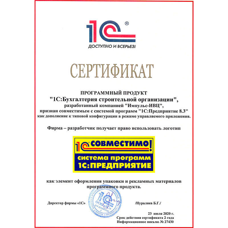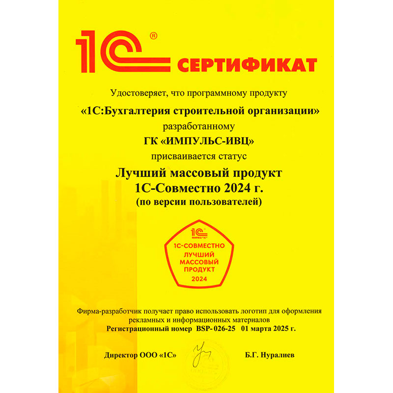 Имеет возможность обмена данными с программными продуктами: 1С:ПСУФ; 1С:Смета 3.