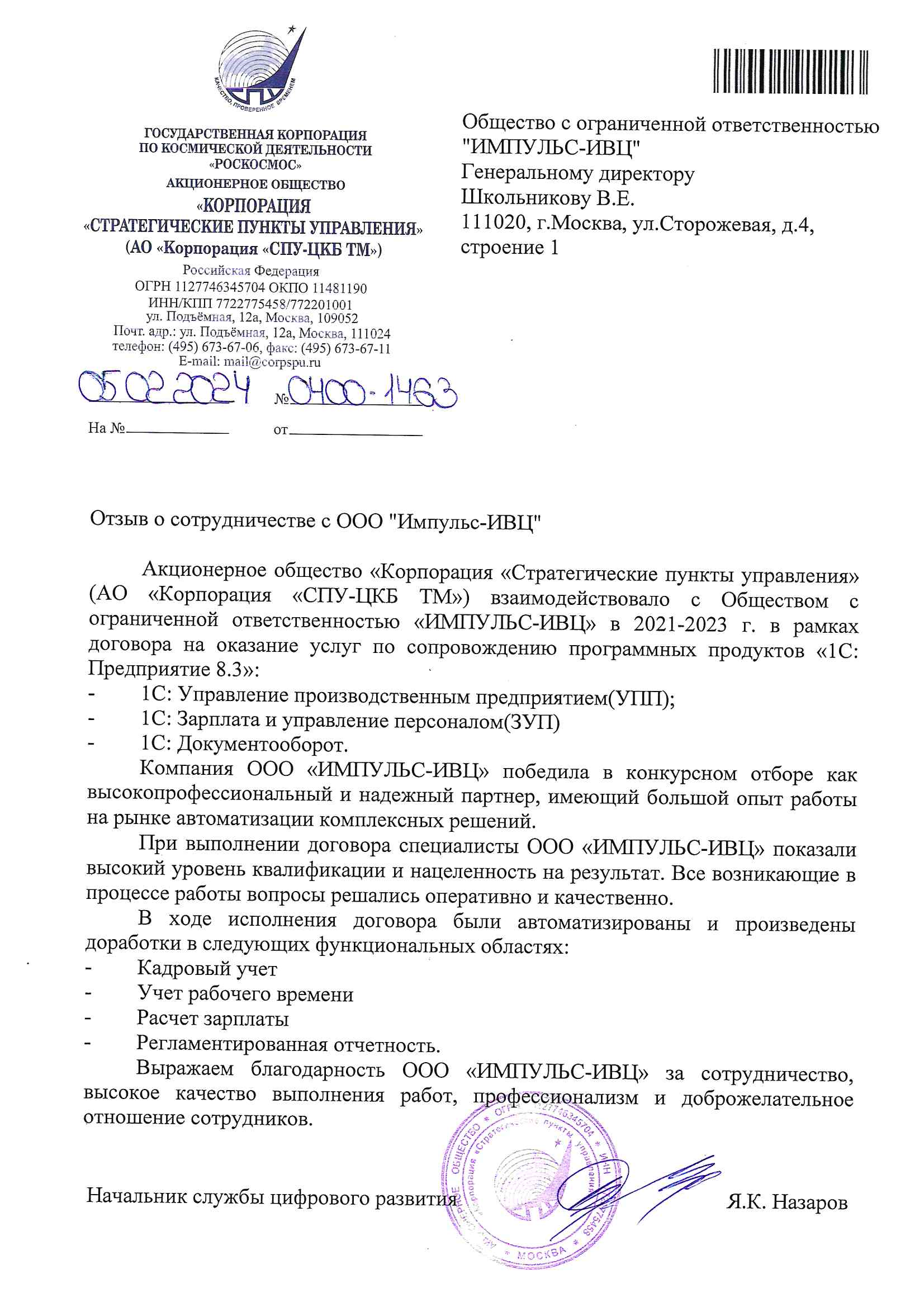 В проектах «ИМПУЛЬС-ИВЦ» воплощен успешный практический опыт компании; высокий профессионализм технических специалистов, программистов и менеджеров; современные технологии, продукты и решения ведущих производителей оборудования и программного обеспечения. Знание специфики деятельности наших заказчиков, оперативность, высокое качество работ, гибкая финансовая политика – все это помогло завоевать доверие постоянных клиентов – представителей строительного и государственного секторов.