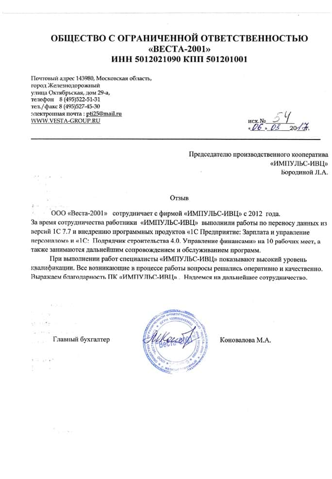 ООО «Веста-2001»Дата сдачи проекта 2017 год |