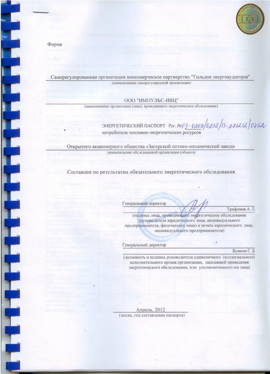 «ИМПУЛЬС-ИВЦ» (ЦФО, г. Москва) провел комплекс работ по энергетическому обследованию предприятия Государственной корпорации «Ростехнологии» ОАО «Загорский оптико-механический завод», В ходе работ было проведено энергетическое обследование предприятия, в ходе которого был проведен сбор данных по потреблению и выработке ТЭР, проведено обследование системы электроснабжения и электропотребления, проведено обследование системы теплоснабжения и теплопотребления, проведена паспортизация зданий и сооружений с их тепловизионным обследованием, проведено обследование системы водоснабжения и водоотведения, обследование системы вентиляции и кондиционирования, проведен анализ программы энергосбережения предприятия. Был разработан перечень мероприятий по экономии энергоресурсов, которые являются обязательными для включения в отчёт по проведению энергетического обследования. По результатам энергетического обследования был разработан Перечень мероприятий по энергосбережению и повышению энергетической эффективности. Подготовлен и зарегистрирован в СРО Энергетический паспорт предприятия. Общая стоимость проекта составила 1 910 000 руб. |