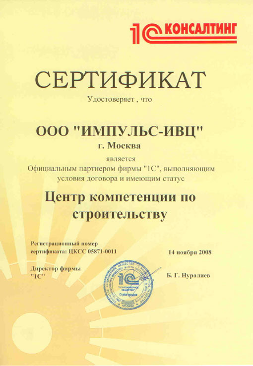 «ИМПУЛЬС-ИВЦ» имеет статус Центра компетенции по строительству (ЦКС), что гарантирует высокое качество услуг при работе с программным продуктом «1С:Управление строительной организацией 8».