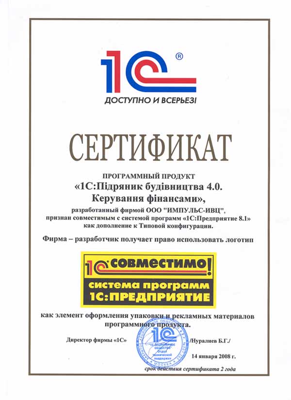 Фирма завершила работы по созданию нового программного решения «1С:Підрядник будівництва 4.0. Керування фінансами», предназначенного для автоматизации бухгалтерского учета, финансового планирования, управления финансовыми ресурсами и анализа финансово-хозяйственной деятельности подрядной строительной организации. Система предназначена для комплексной автоматизации задач финансовой службы предприятия. Конфигурация создана на базе типового решения «1С:Бухгалтерия 8 для Украины».