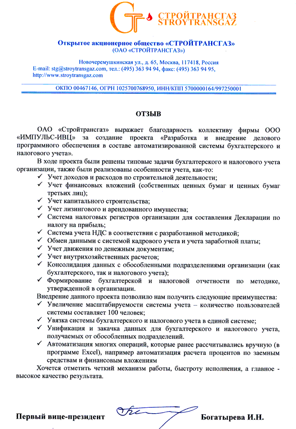 - В промышленную эксплуатацию введено деловое программное обеспечение в составе автоматизированной системы бухгалтерского и налогового учета в головном офисе ОАО «Стройтрансгаз».