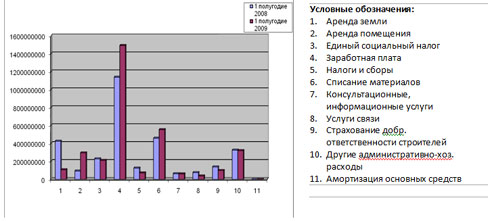 Средняя статистика изменений объемов работ и управленческих расходов по строительным компаниям в первом полугодии 2008 и 2009 гг. такова: