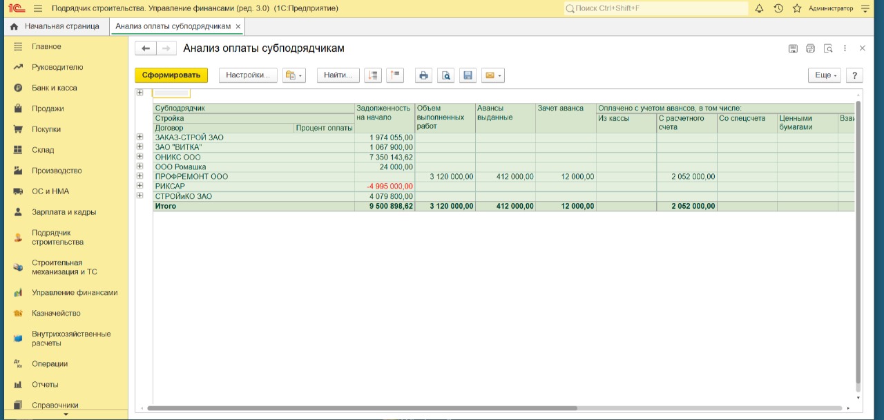 - 1С:Подрядчик строительства. Управление финансами
