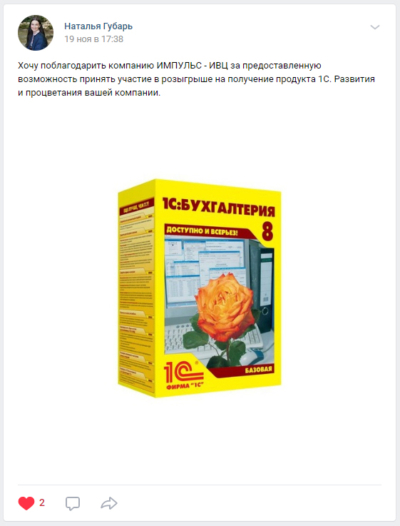 Спешим сообщить, что прошел первый розыгрыш программ 1С в нашей группе ВКонтакте.