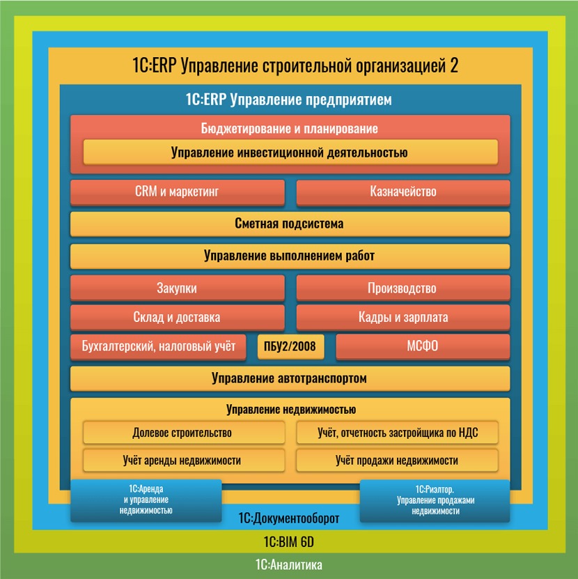 «1С:ERP Управление строительной организацией 2» - решение для предприятий, занимающихся любыми видами строительства, реконструкцией, реноваций, реставрацией, капитальным и другими видами ремонта.